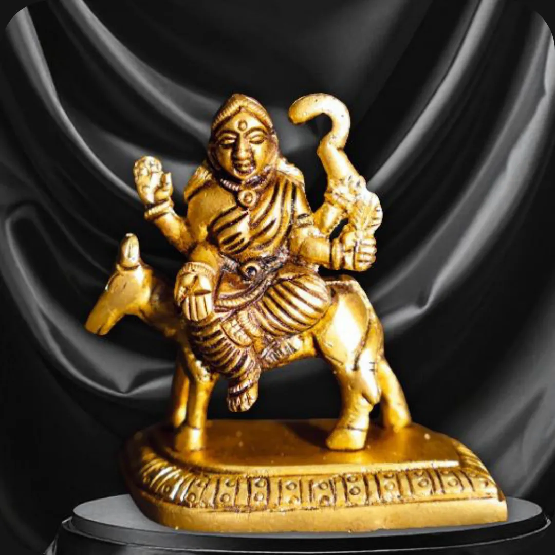 Katyayani (often locally called Kateri Maa) is a powerful form of Durga worshipped for protection and fulfillment of wishes. This brass murti represents divine feminine strength and guardian energy in Hindu devotion.